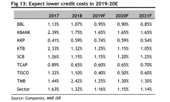 Thai banks' credit costs to fall to 1.16% by end-2019